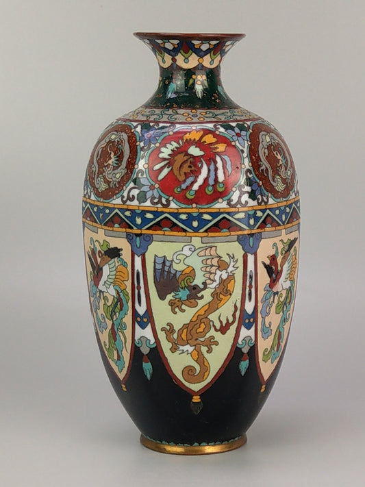 Antique Japanese Cloisonne Enamel Vase Meiji Period with Dragons