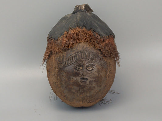 Carved Coconut shell creepy face art from Oceania Polynesia c1960