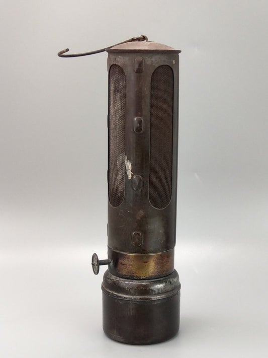 Antique brass Miner's lamp Davy type by E.Thomas and Williams