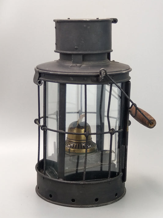 Victorian Railway Carriage oil Lamp with bevelled glass panels