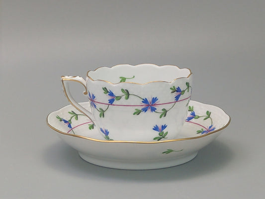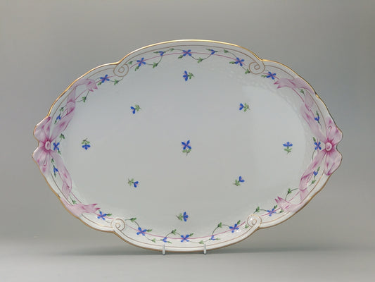 Large tray Herend porcelain Cornflower Blue Garland with pink Ribbon