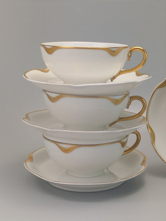 Set of 4 Limoges Teacups Silver Anniversary pattern by Haviland