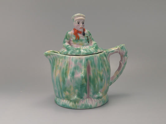 Novelty Green and Pink Mottled Teapot Dutch Boy by Arthur Wood