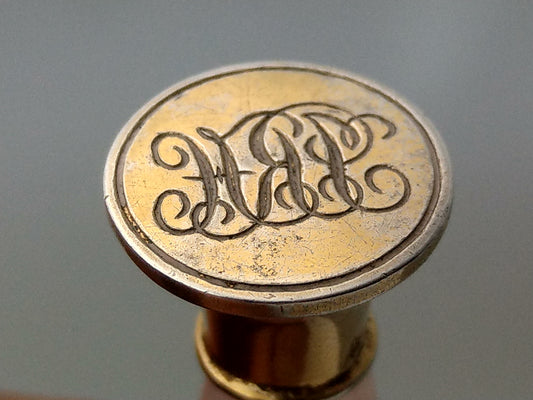 Antique Desk Wax Seal Monogram letter M with Wooden Handle