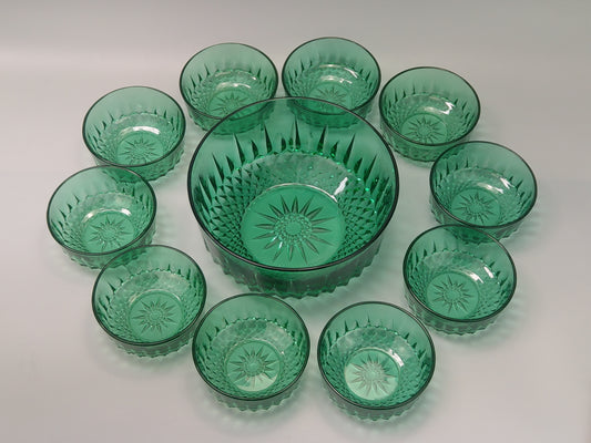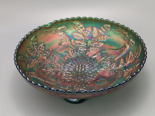 Fenton Carnival Green Glass Footed Bowl Stag and Holly Electric