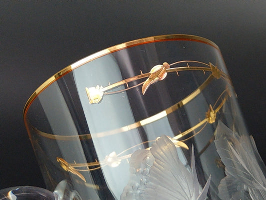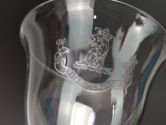Antique Wine Glasses with Etched Scottish Clan Crest "Veritas via Vitae"