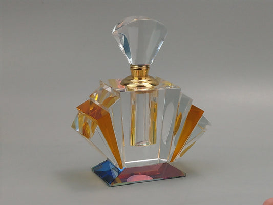 Fan-Shaped Perfume Bottle, Cut Crystal Glass in Art Deco Style