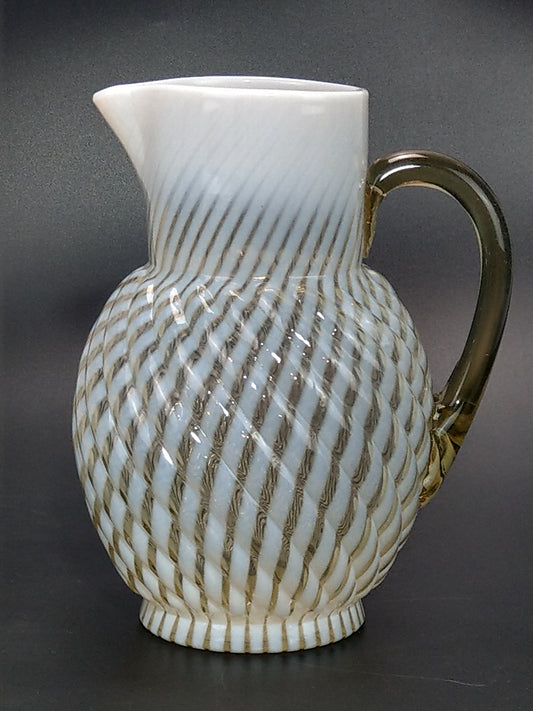 Vaseline Opalescent Glass Pitcher Reverse Swirl Buckeye No. 528