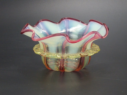 Stourbridge Vaseline and Cranberry Candystripe Glass Bowl