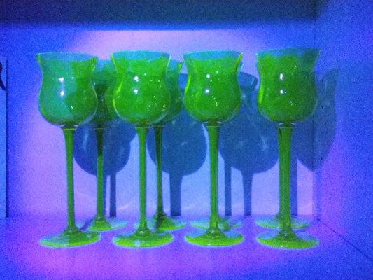 Amber Uranium Hock Glasses by John Walsh Set of 8