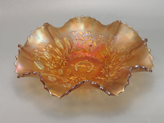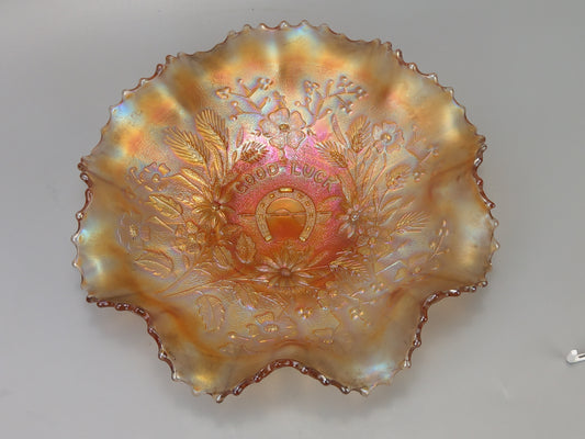 Northwood Good Luck Bowl Clear Marigold Carnival Glass