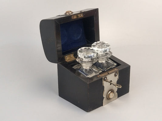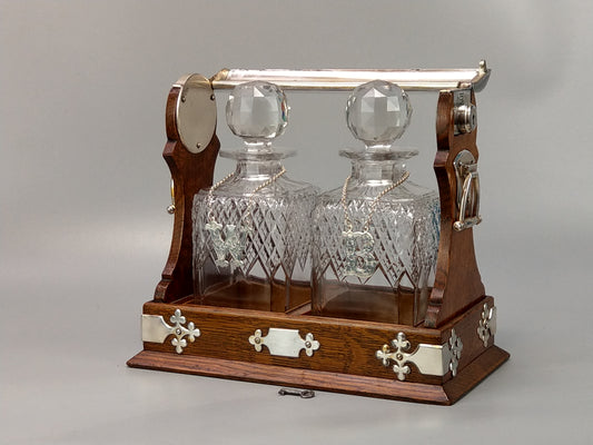 Antique Oak Tantalus with Silver-Plated Mounts and Key Lock by Hobbs & Co London