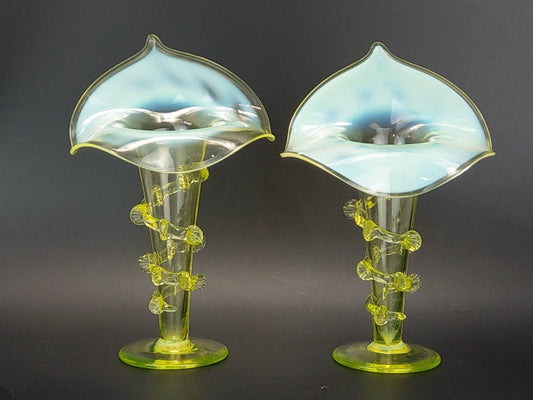 Pair of Jack in the Pulpit vases Vaseline Uranium Glass by Thomas Webb