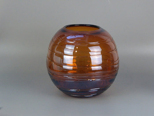 Vintage Spherical Vase Amber Glass with clear Swirl applied