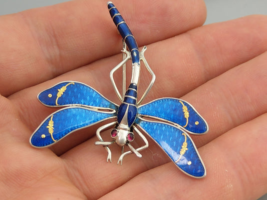 Guilloche enamel dragonfly brooch by Meyle and Mayer