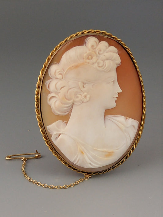 Victorian Large Shell Cameo Brooch set in rolled gold