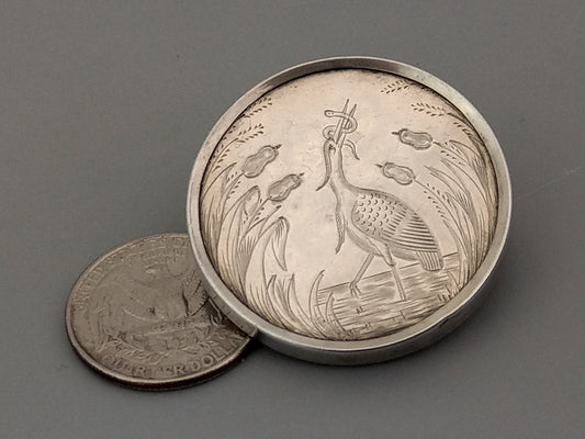 Large Sterling Silver etched Brooch with Crane by George West c1875
