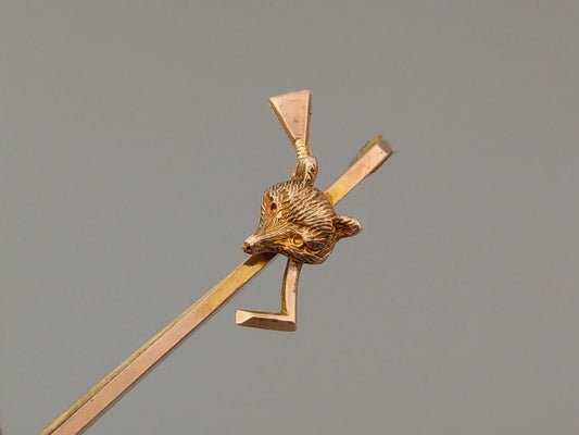 9ct gold Fox Head Brooch with Fox and Riding Crop