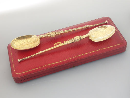 Large anointing spoons in case Gold gilt on Sterling Silver