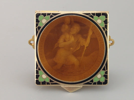 French Enamel St Christopher Car Dashboard Plaque Gold Gilt on Silver
