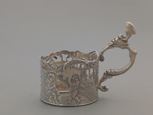 Sterling silver shot glass holders, set of 6, Dutch export for Louis Landsberg, London.