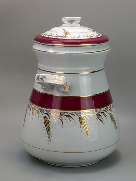 Antique Large Flour Bin in Burgundy with Gold Ear of Wheat Design