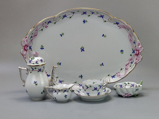 Herend porcelain coffee set for one - Cornflower Garland with pink ribbo