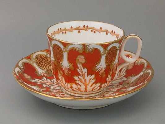 Rococo-style Cup and Saucer, Orange and Gold Davenport c1850, Pattern 2144