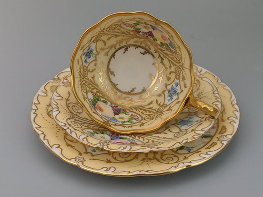 Nautilus Porcelain Trio Teacup and Saucer Yellow and Gold Rococo Style