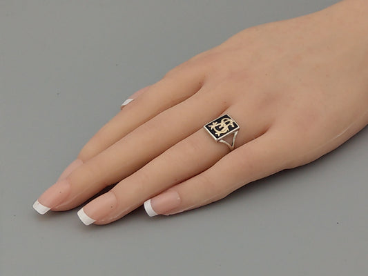 Ladies' Signet Ring with Black Onyx and Gold Initials AS