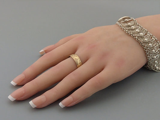 9ct Gold Ladies Patterned floral Thick Band ring by Berker Brothers