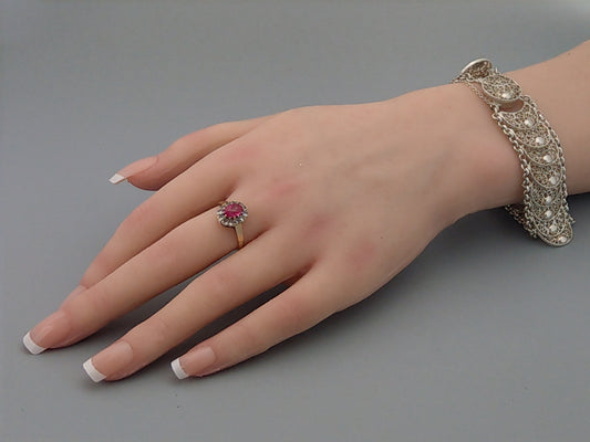 9ct Gold ring set with Pink Sapphire stone and white gem stones