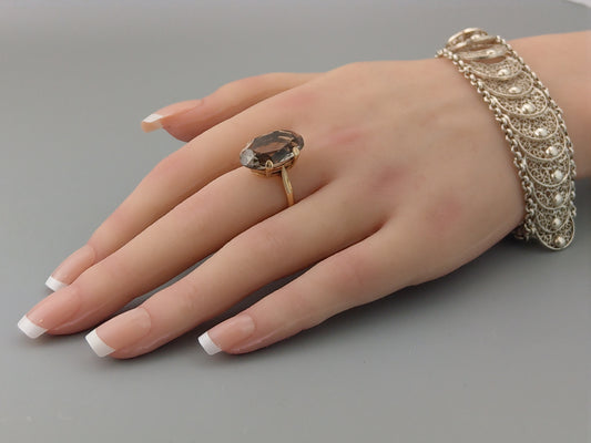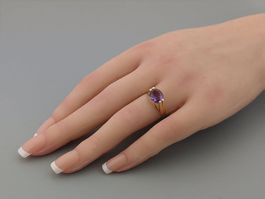Vintage 9ct gold Delicate ring with Emerald oval cut