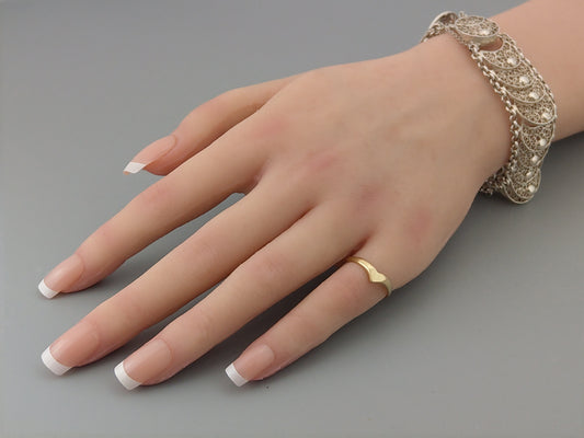 Simple 9ct Gold wishbone-heart signet band ring by DJ Hill