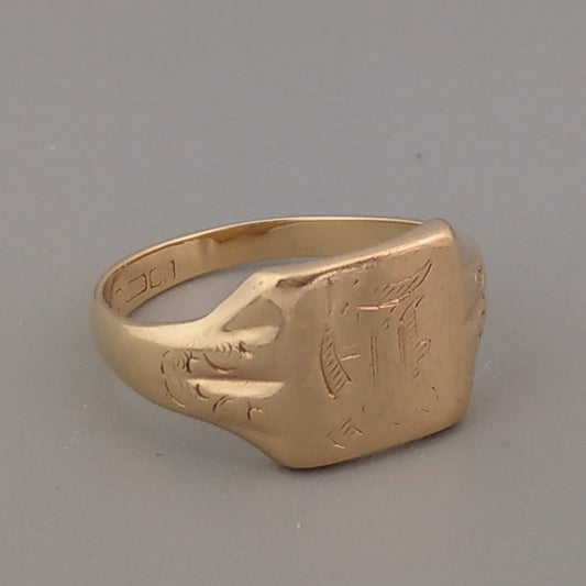 Antique 9ct gold signet ring, engraved with the letter, size T (UK) or 9.3/4 (US).